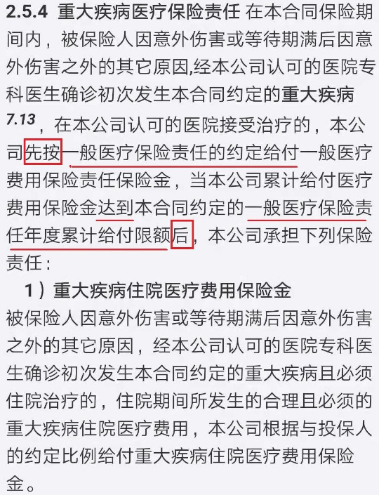 被診斷為重大疾病,首先按一般醫(yī)療保險責任金報銷,并在達到一般醫(yī)療保險責任限額后,重大疾病保險責任金報銷。