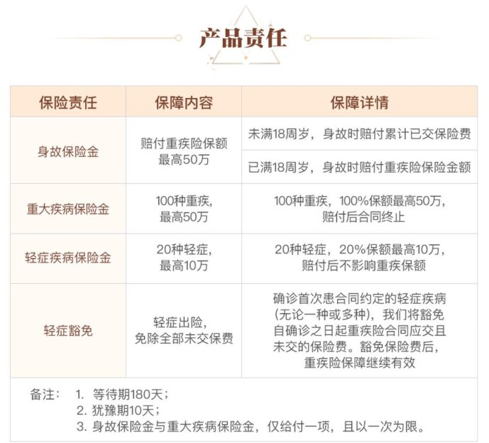 陽光i保的產(chǎn)品責(zé)任還比較簡單。包括重大疾病保險、輕癥保險、死亡保險、