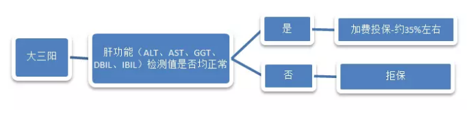 重疾險:加費(fèi)/拒保。重疾險對大三陽投保,如果肝功能正常,加費(fèi)的情況比較多。例如哆啦A保重疾險的智能核保結(jié)果如下: