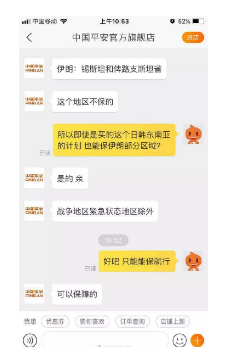 雖然一些境外旅游險是會將部分戰(zhàn)亂地區(qū)除外,但楊女士已詢問過平安客服,確定父母去的地區(qū)是在承保范圍內(nèi)的。