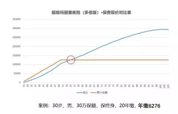 超級瑪麗多倍版在到55歲時現(xiàn)金價值就超過了保費。