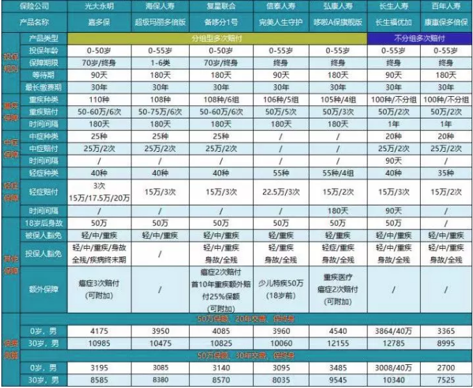 對于預算充足的朋友,可以選擇多次賠付的重疾險,畢竟保障會更加全面。而市場上也有不少同類的高性價比的產品。