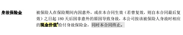 達爾文1號對于身故保障是給付保單的現(xiàn)金價值。