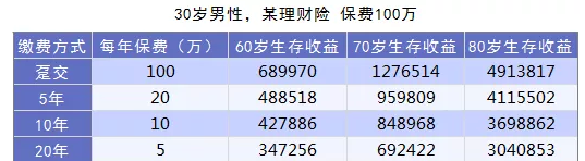 前期投入100萬(wàn),后期的生存收益有400萬(wàn)。同樣100萬(wàn),分期交10年和20年的收益差了將近60萬(wàn)。