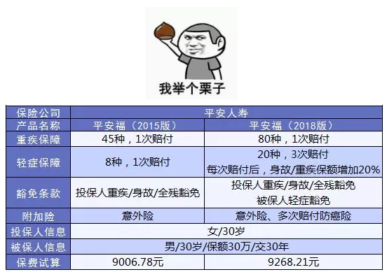 從表格中我們可以看到:同樣是平安福;同樣的投保人;同樣的被保人以及相差不多的保費!但是保障內(nèi)容卻有了翻天覆地的變化(產(chǎn)品怎么樣先放到一邊不說)