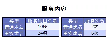 重疾綠通:遠(yuǎn)程問診、專家門診、住院安排、手術(shù)安排、住院探視、醫(yī)后隨訪、中醫(yī)理療、營養(yǎng)方案、專家復(fù)診。