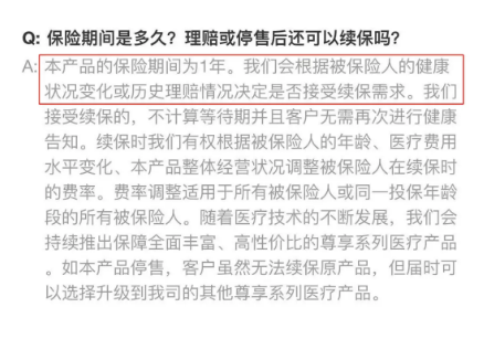 在尊享e生爸媽版投保頁面的常見問題中,關(guān)于續(xù)保,官方有如下答復(fù):