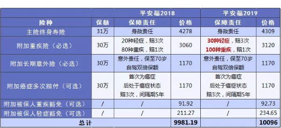 好在,它的保費(fèi)也沒有增加太多,所以如果是喜歡平安福的朋友,確實(shí)2019要比2018好一些。