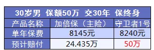 雖然守衛(wèi)者1號(hào)每年的保費(fèi)要高一百塊,但是在身故保障上,一個(gè)是50萬(wàn)基本保額,一個(gè)是24萬(wàn)已交保費(fèi),兩者相差近一倍,守衛(wèi)者1號(hào)更優(yōu)。