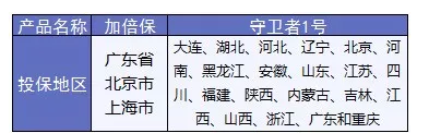 加倍保和多數(shù)重疾險(xiǎn)一樣,只限定在北上廣地區(qū),但是守衛(wèi)者1號(hào)的投保地區(qū)覆蓋全國(guó)約73%的省市,更有優(yōu)勢(shì)。