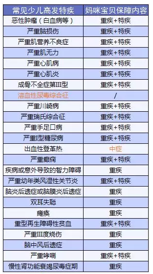 媽咪寶貝在特疾保障上,疾病數(shù)量多,而且覆蓋的病種也很有誠(chéng)意,幾乎涵蓋了最常見的少兒高發(fā)重疾: