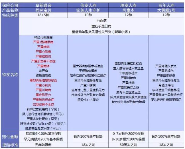 涵蓋少兒特疾的產(chǎn)品其實(shí)很多,保魚君挑選了幾款比較有特點(diǎn)的產(chǎn)品來與媽咪保貝做個(gè)比較:
