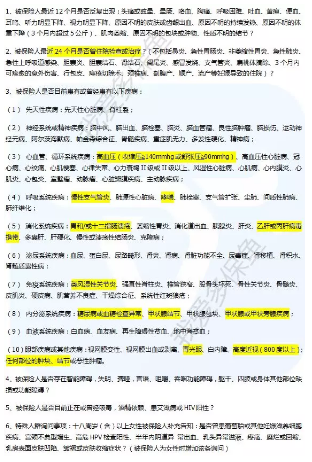 針對常見的比如:一年內(nèi)是否有住院情況、高血壓、哮喘、乙肝病毒攜帶、糖尿病、甲狀腺結節(jié)等都有詢問,比較嚴格。