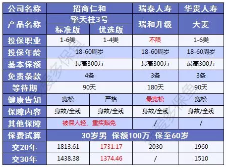 選擎天柱3號優(yōu)選版:極致費率,附加豁免,保障全面;如果職業(yè)上不能投的話,那標準版加豁免也不錯的;