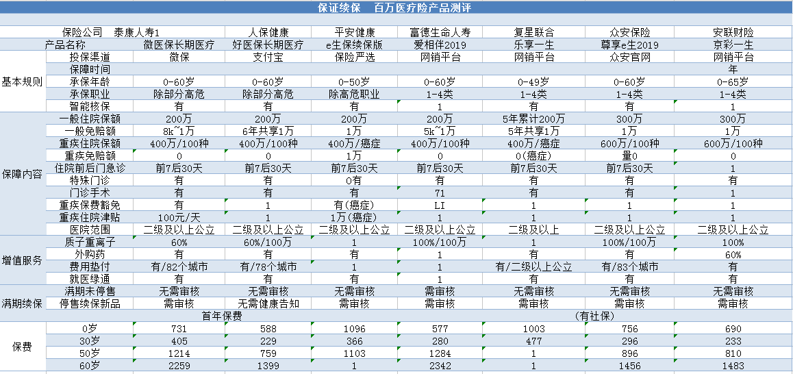 目前,市面上保證續(xù)保的醫(yī)療險(xiǎn)并不多見(jiàn),小編整理了幾款產(chǎn)品:
