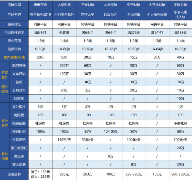 市面上很多意外險,外籍人士都不能買,這里也為大家匯總一些可投保的產品: