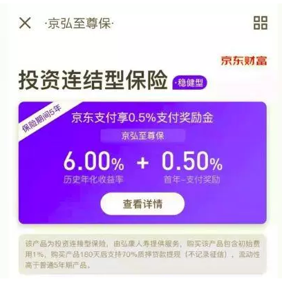 如果風(fēng)險(xiǎn)承受能力較高,并且對流動性有一定要求,京東金融上面還有6%的投資連結(jié)保險(xiǎn)。