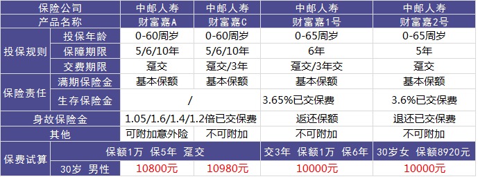 不看不知道,一看嚇一跳,富富余財(cái)富嘉有4款,每款保障差不多但是收益卻是不一樣的。保魚君列了一張表給大家看下它們幾款的保障和區(qū)別。