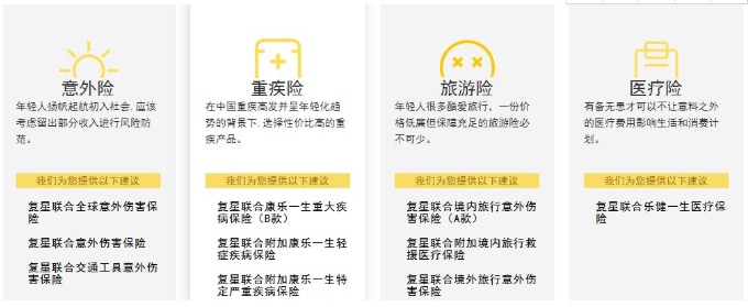 復星聯(lián)合健康主要經(jīng)營壽險、重疾險、醫(yī)療險、意外險等各類人身保險業(yè)務。其在保險行業(yè)里規(guī)模并不大,所以相應的推出的產(chǎn)品也沒有很多。