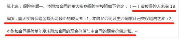 上邊的條款簡單來說就是:18歲之前得大病,不賠錢,只退保費(fèi)!?。?/span>