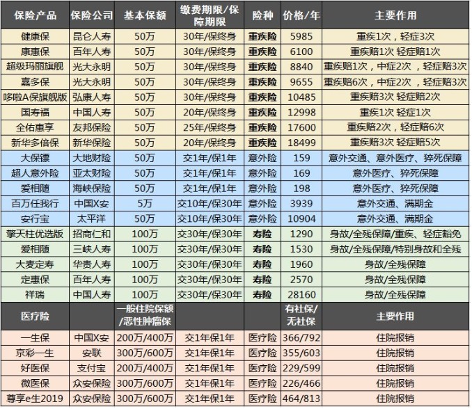 我總結(jié)了一些熱銷(xiāo)的保險(xiǎn),包括日常常見(jiàn)的四大類(lèi):重疾、醫(yī)療、意外、壽險(xiǎn)。