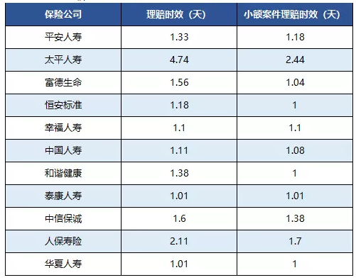 根據(jù)北京的數(shù)據(jù),無論是我們經(jīng)常聽到的大公司,還是不常見的幸福人壽、恒安標(biāo)準(zhǔn)等公司,在理賠的速度上整體差異不大。
