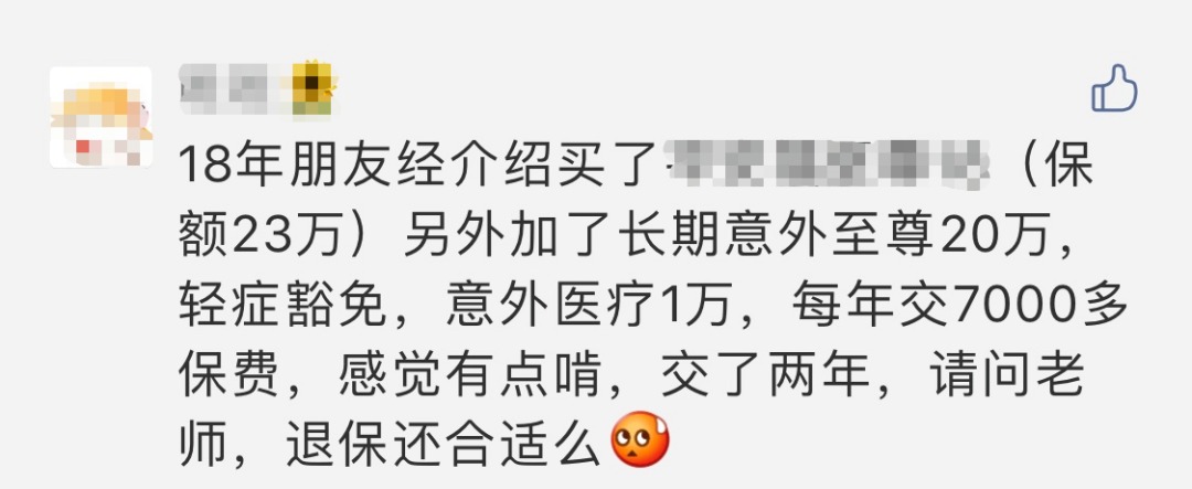 昨天收到一條粉絲的留言,說(shuō)自己不幸買(mǎi)錯(cuò)保險(xiǎn),很猶豫要不要退保。