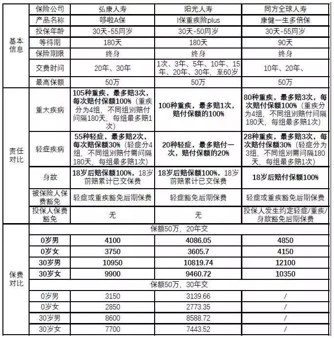 關(guān)注重大疾病保險(xiǎn)的情況,確定他們需要購買重大疾病保險(xiǎn)時(shí),一定要考慮保險(xiǎn)條款和保障方面。您可以優(yōu)先考慮市場(chǎng)上具有良好聲譽(yù)的幾種產(chǎn)品,然后比較重點(diǎn)。側(cè)重點(diǎn)大致可分為:保障種類、賠付次投保費(fèi)用。我選擇了以下三種重癥疾病產(chǎn)品進(jìn)行比較。當(dāng)每種產(chǎn)品的優(yōu)點(diǎn)一目了然時(shí),很容易做出選擇。