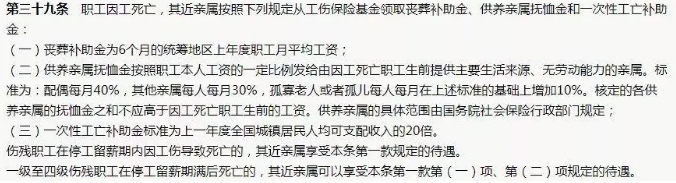 因此,只要該公司正常繳納了五險,工傷保險就會賠付。具體的賠付包括喪葬補助金、供養(yǎng)親屬撫恤金和一次性工亡補助金。