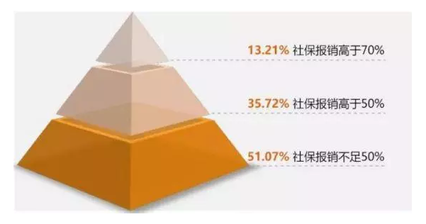 1、超過一半的人社保報銷比例小于50%,百萬醫(yī)療險和重疾風險至關重要;