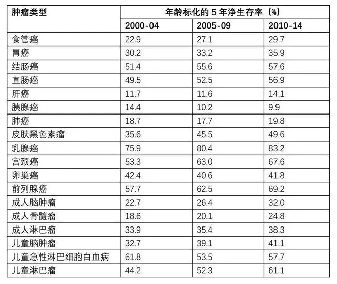 2、中國(guó)癌癥患者的5年生存率穩(wěn)步上升