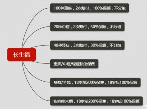 長生福重疾保險責任:共有100種疾病,無分組,可支付2次,索賠間隔超過365天