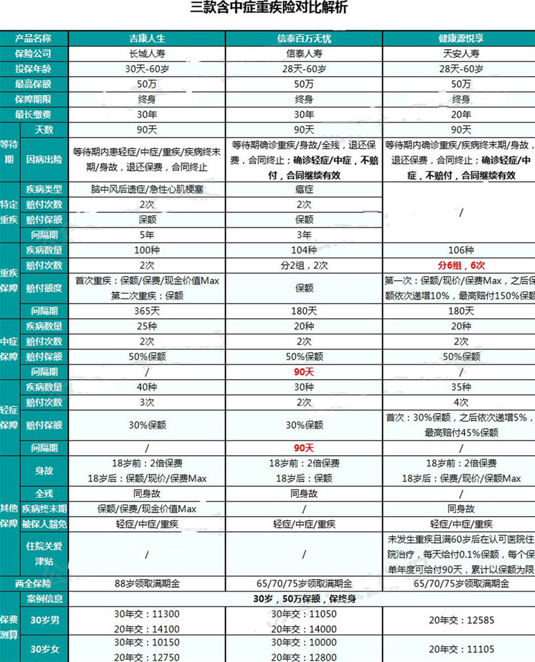 長(zhǎng)城 信泰 天安三款重疾險(xiǎn)測(cè)評(píng)
