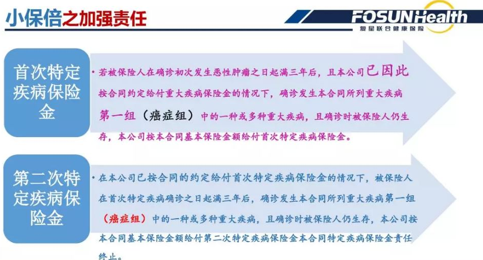 注意:特定疾病是指第一組主要疾?。ò◥盒阅[瘤),在賠付惡性腫瘤后僅能觸發(fā)理賠。分析: