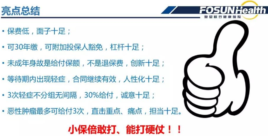 在以上看來,多保魚認為復星聯(lián)合小保倍是一款性價比非常高的重疾險,對與依稀哦對重疾險有要求的人說,保費低,保額高,保障全面,是一個非常劃算又實用的保險產(chǎn)品,值得購買。