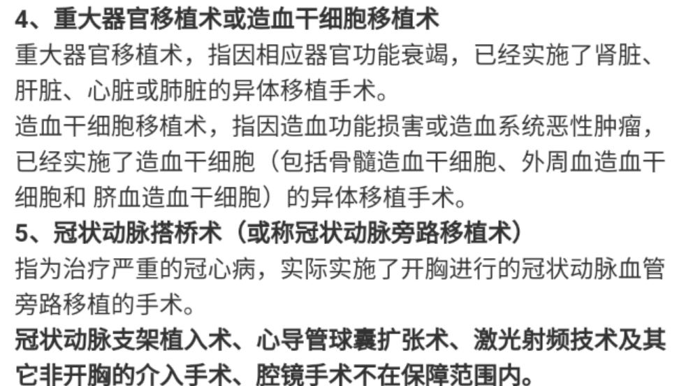 明確要求實(shí)施約定的手術(shù)并達(dá)到賠付狀態(tài)。常見(jiàn)的是重大器官移植,如肝臟、心臟、腎臟之類;或老年人冠狀動(dòng)搭橋手術(shù)。