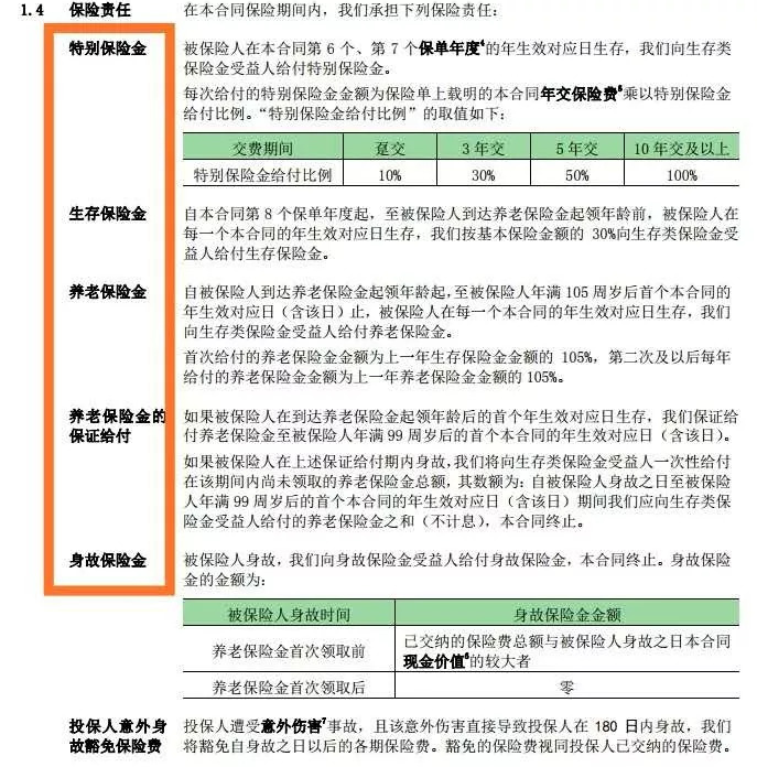 例如,泰康目前正在發(fā)售鑫福年金保險,主要保險的保險責(zé)任如下: