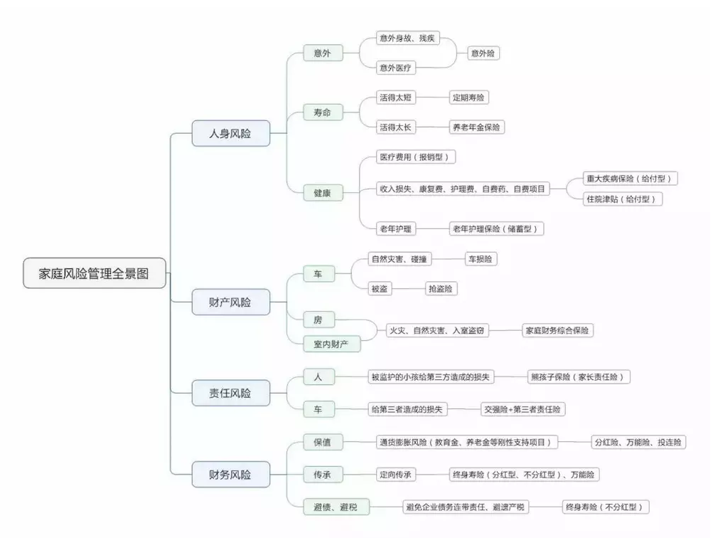 底層風(fēng)險(xiǎn)也稱為不可抗力風(fēng)險(xiǎn),主要解決不可預(yù)測(cè)事件對(duì)家庭造成的財(cái)務(wù)損失。產(chǎn)品包括定期壽險(xiǎn)、意外險(xiǎn)、重大疾病保險(xiǎn)、醫(yī)療保險(xiǎn)。