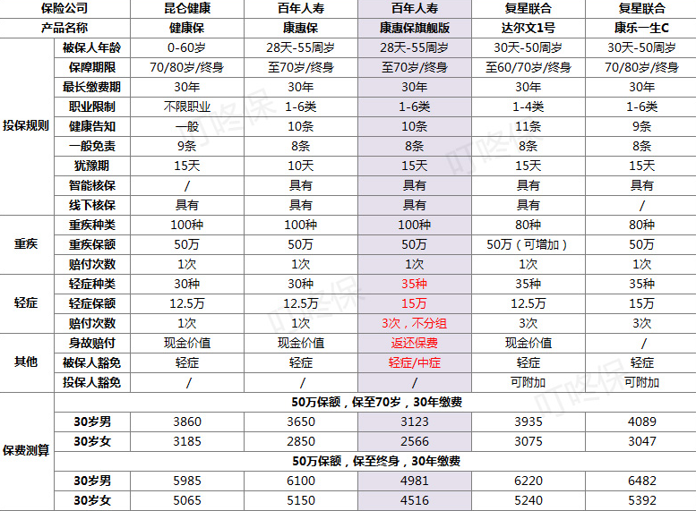 之前有很多人問多保魚百年人壽家的康惠保旗艦版怎么樣,多保魚認為還是很不錯的,現(xiàn)在在市面上的類似產(chǎn)品比較直接,保障升級也很全面,但是單單說是不看出來的,我們下面來做一個保障責任和其他重疾險的對比,大家就可以比較直觀了。