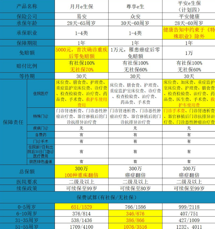 這三種的總保險(xiǎn)金額是杠桿,基本保險(xiǎn)金額為300萬(wàn),但最大保險(xiǎn)金額不同。月月e保是100種主要疾病,保險(xiǎn)金額增加一倍并支付;尊享e生和平安e生保只是愛(ài)張翻倍,而保障之間的差異仍然完全不同。