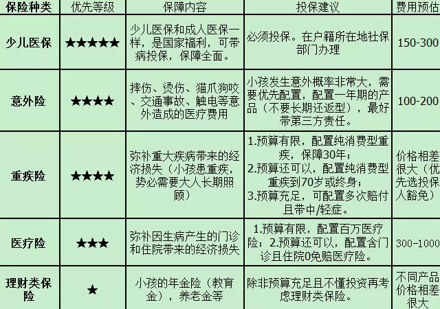 二:在家庭成員中,大人都是支柱,保費(fèi)必須先滿足大人,對(duì)于孩子,意外險(xiǎn)、重大疾病保險(xiǎn)、醫(yī)療保險(xiǎn)是必須的。