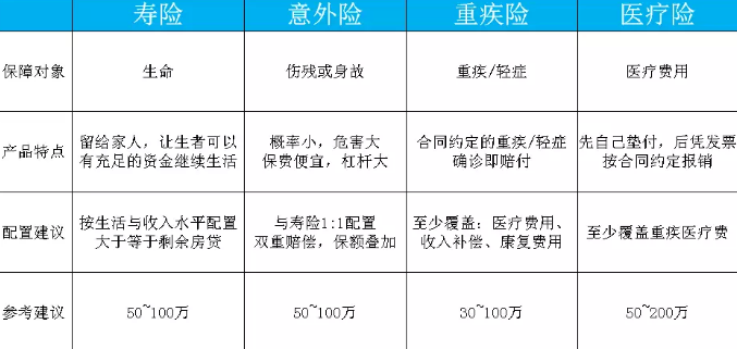 以前我們講過(guò),男性(大部分)作為家庭的經(jīng)濟(jì)支柱,是一個(gè)家庭中最需要配備保險(xiǎn)的人,畢竟你的健康才是對(duì)其他家人最好的保險(xiǎn)。如果是中產(chǎn)男性又怎么買(mǎi)保險(xiǎn)比較好呢?保魚(yú)君的建議是,一定要把保險(xiǎn)買(mǎi)全,我們先用圖片來(lái)概括一下人生中需要配置的四種保險(xiǎn)的基本情況。