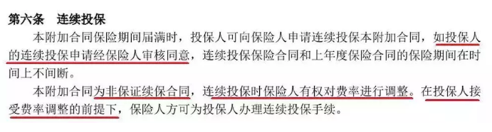 換句話說,這個產(chǎn)品不保證續(xù)保,費率也可以調(diào)整。