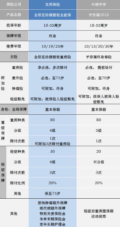 ?全佑至珍有10種類型的輕癥保障多于平安福和賠付組,兩者都可以達(dá)到賠付3次。兩種型號(hào)都有輕癥豁免,全佑至珍可以連接到被保險(xiǎn)人輕癥豁免,而平安??梢赃B接到投保人、被保險(xiǎn)人輕癥豁免。