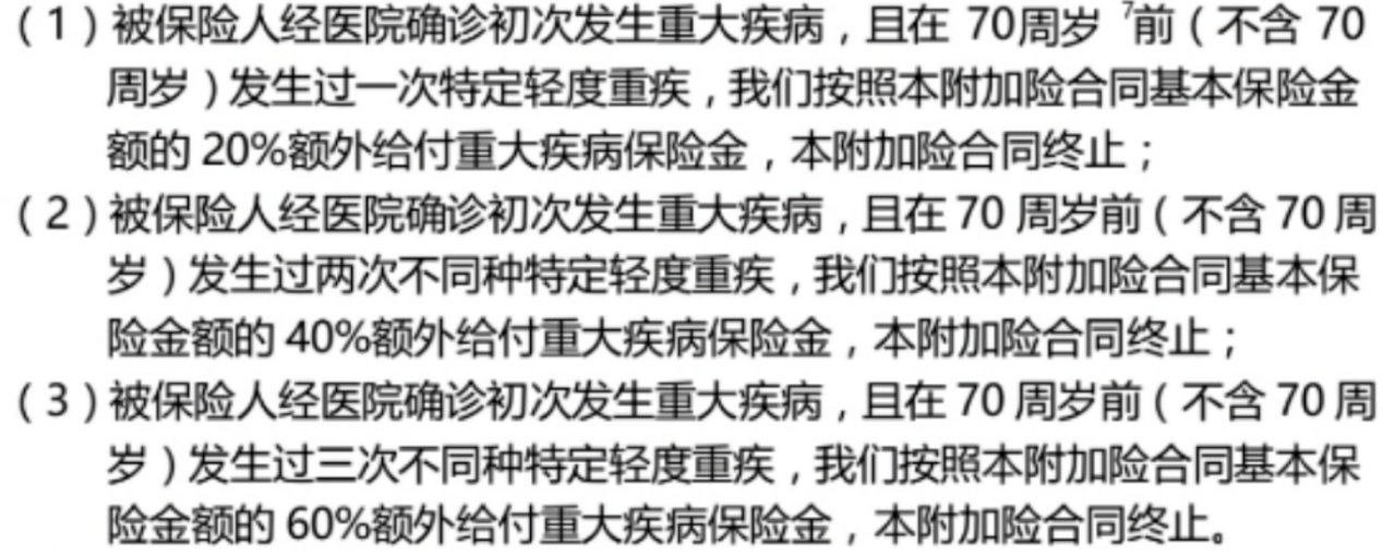 平安福的特點(diǎn)是,如果您在輕癥之后患有嚴(yán)重疾病,每種嚴(yán)重疾病的保額將增加20%: