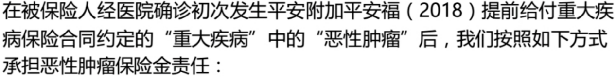 也就是說,無論第一次診斷是惡性腫瘤還是非惡性腫瘤,癌癥的附加險(xiǎn)有效。