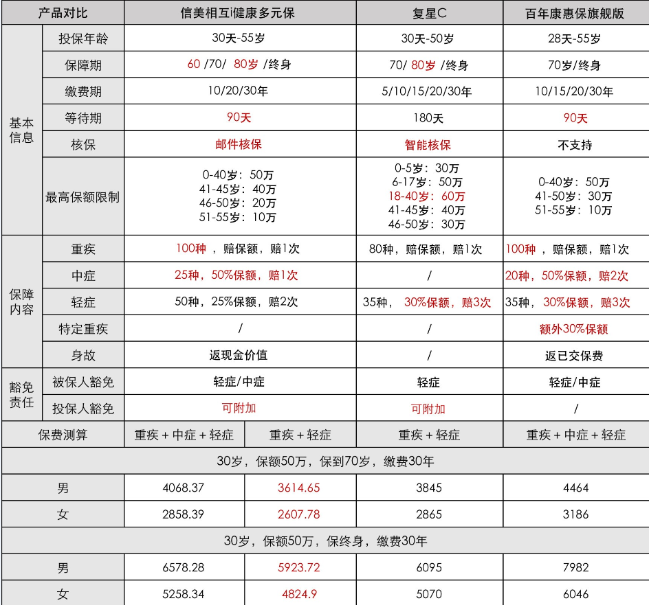 三葉草重疾險(xiǎn)與其他高性?xún)r(jià)比重疾險(xiǎn)對(duì)比圖如下: