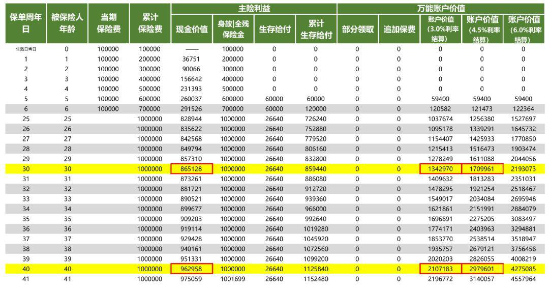 采用中檔萬(wàn)能演示,則是4.5%的一致利率。