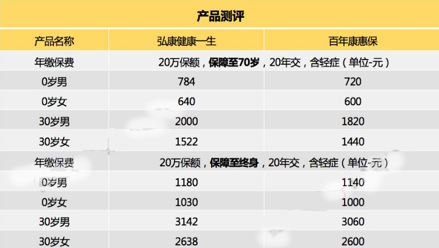 從產(chǎn)品的基本形式來看,弘康健康一生A + B和百年康惠保幾乎相差無幾,但細(xì)微處仍然存在差異,其中弘康健康一生A + B的輕癥可靠性優(yōu)于康惠保,輕癥賠付保額為30%,額外賠付2次;和康惠保是25%。賠付1次。但是,康惠保對(duì)死亡負(fù)有責(zé)任,身故退還現(xiàn)價(jià)。
