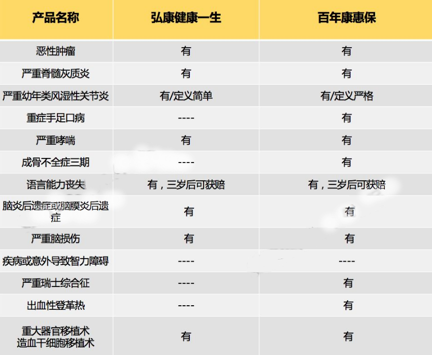 但是,如果我們看一個(gè)特定的組:例如,孩子,這兩個(gè)產(chǎn)品的兒童特定重疾保障覆蓋范圍是什么?